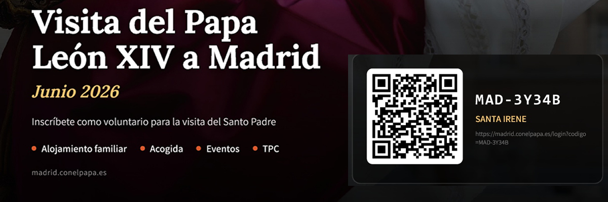 INFORMACIÓN PRÁCTICA Y DE INTERÉS ANTE EL VIAJE A MADRID DEL PAPA LEÓN XIV ¿Cuándo es la visita del papa? Del 6 al 12 de junio estará en España. En Madrid del 6 al 9 de junio. ¿Cómo informarme de la visita? Programación, novedades y formularios è web www.archimadrid.org ¿Quién y cómo se puede colaborar? Las instituciones (parroquias, colegios y congregaciones religiosas) ofreciendo espacios de alojamiento. Santa Irene ya está dada de alta como… Continúa leyendo